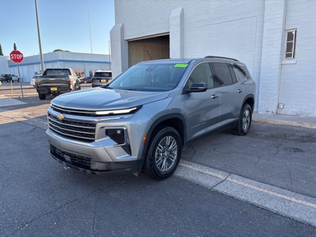 Sterling Gray Metallic 2025 Chevrolet Traverse LT 1LT FWD 8-Speed Automatic 2.5L DOHC 3rd row seats: split-bench, 4-Way Manual Front Passenger Seat Adjuster, 4-Wheel Disc Brakes, 6 Speakers, 6-Speaker Audio System Feature, 8-Way Power Driver Seat Adjuster, ABS brakes, Air Conditioning, Alloy wheels, AM/FM radio: SiriusXM with 360L, Apple CarPlay/Android Auto, Auto High-beam Headlights, Automatic temperature control, Brake assist, Bumpers: body-color, Child-Seat-Sensing Airbag, Compass, Delay-off headlights, Driver door bin, Driver vanity mirror, Dual front impact airbags, Dual front side impact airbags, Electronic Stability Control, Emergency communication system: OnStar, Four wheel independent suspension, Front anti-roll bar, Front Bucket Seats, Front Center Armrest, Front dual zone A/C, Front reading lights, Fully automatic headlights, Heated door mirrors, Heated front seats, Heated steering wheel, Illuminated entry, Low tire pressure warning, Navigation System, Occupant sensing airbag, Outside temperature display, Overhead airbag, Overhead console, Panic alarm, Passenger door bin, Passenger vanity mirror, Power door mirrors, Power driver seat, Power Liftgate, Power steering, Power windows, Preferred Equipment Group 1LT, Premium Cloth Seat Trim, Radio data system, Radio: Audio System w/17.7 Diagonal Display, Rear air conditioning, Rear anti-roll bar, Rear reading lights, Rear window defroster, Rear window wiper, Remote keyless entry, Security system, SiriusXM w/360L Trial Subscription, Speed control, Speed-sensing steering, Spoiler, Steering wheel mounted audio controls, Tachometer, Telescoping steering wheel, Tilt steering wheel, Traction control, Trip computer, Turn signal indicator mirrors, Variably intermittent wipers, Voltmeter, Wheels: 18 Grazen Metallic Machined-Face Aluminum.Recent Arrival! 20/27 City/Highway MPG